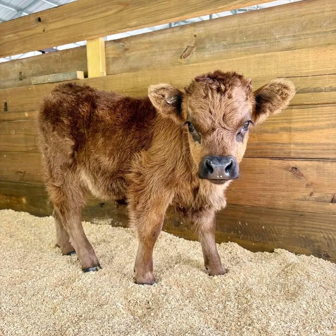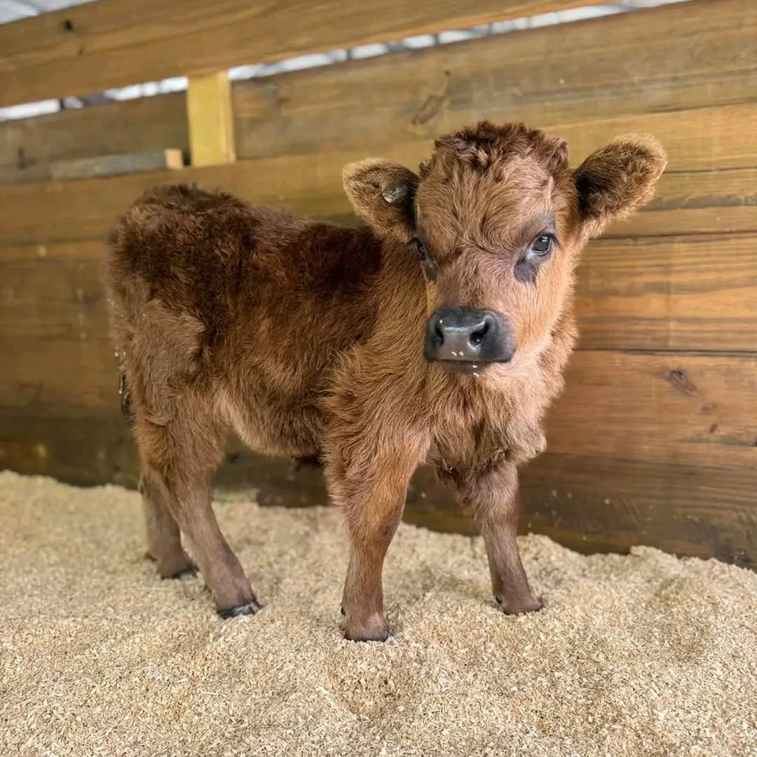 Meet Cocoa, our deep chocolate-colored Mini Highland heifer with a beautifully rich coat and gentle nature. She’s one of the sweetest calves on the ranch — quiet, observant, and loves to follow caretakers around the pen. Her soft curls and expressive eyes make her irresistibly charming.